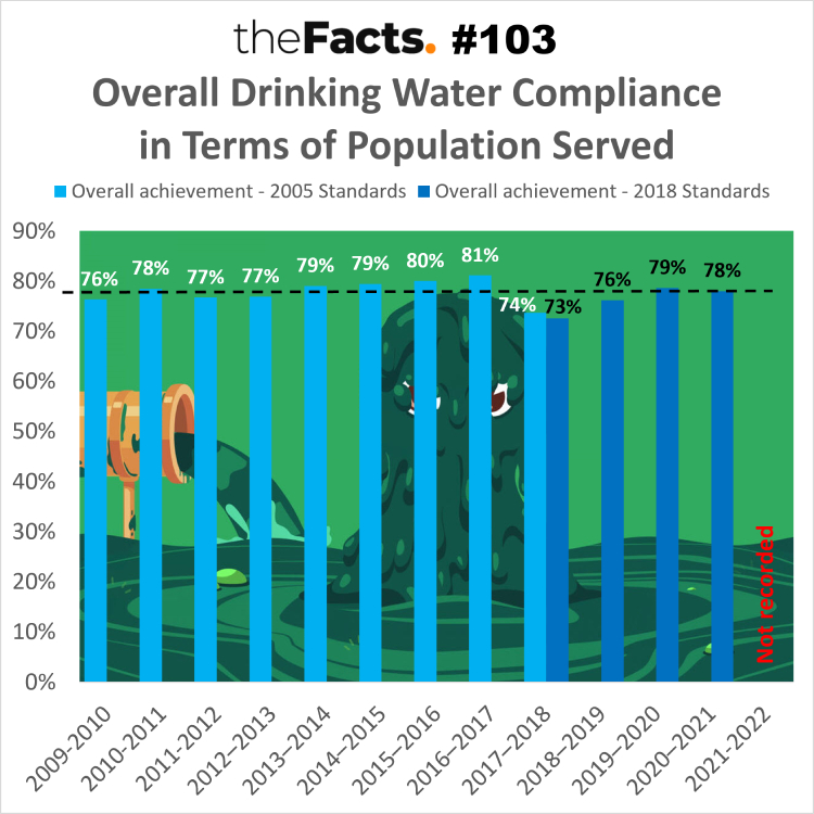 - 2001/22/23 – the responsibility was transferred to Taumata Arowai (the new water regulator), and an overall compliance score is no longer recorded for comparison.