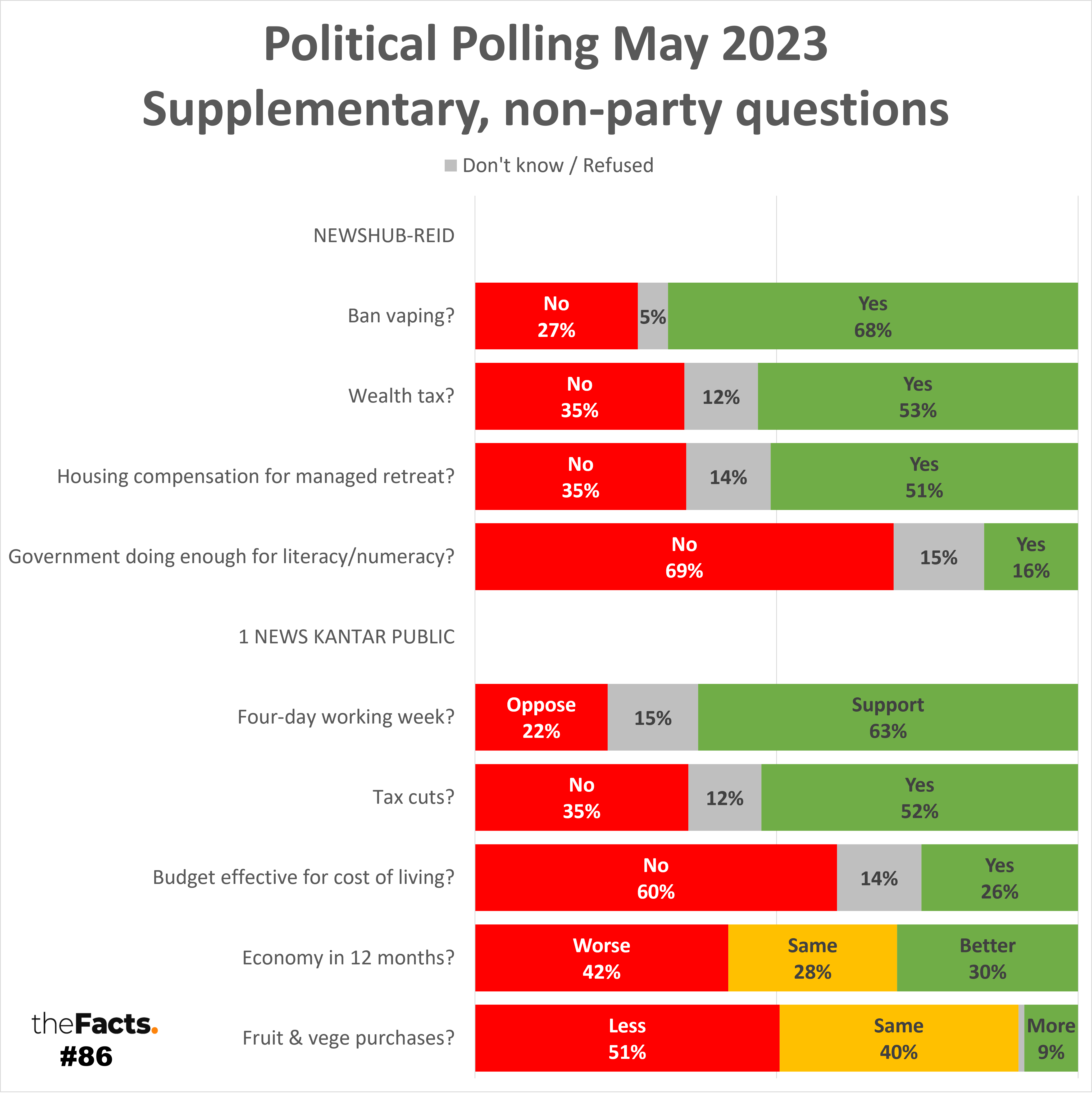 - We have shared all other questions asked in May by 1 NEWS Kantar and Newshub-Reid. These are asked at the same time as the specific voting questions, but are drip-fed into news releases over the following weeks.